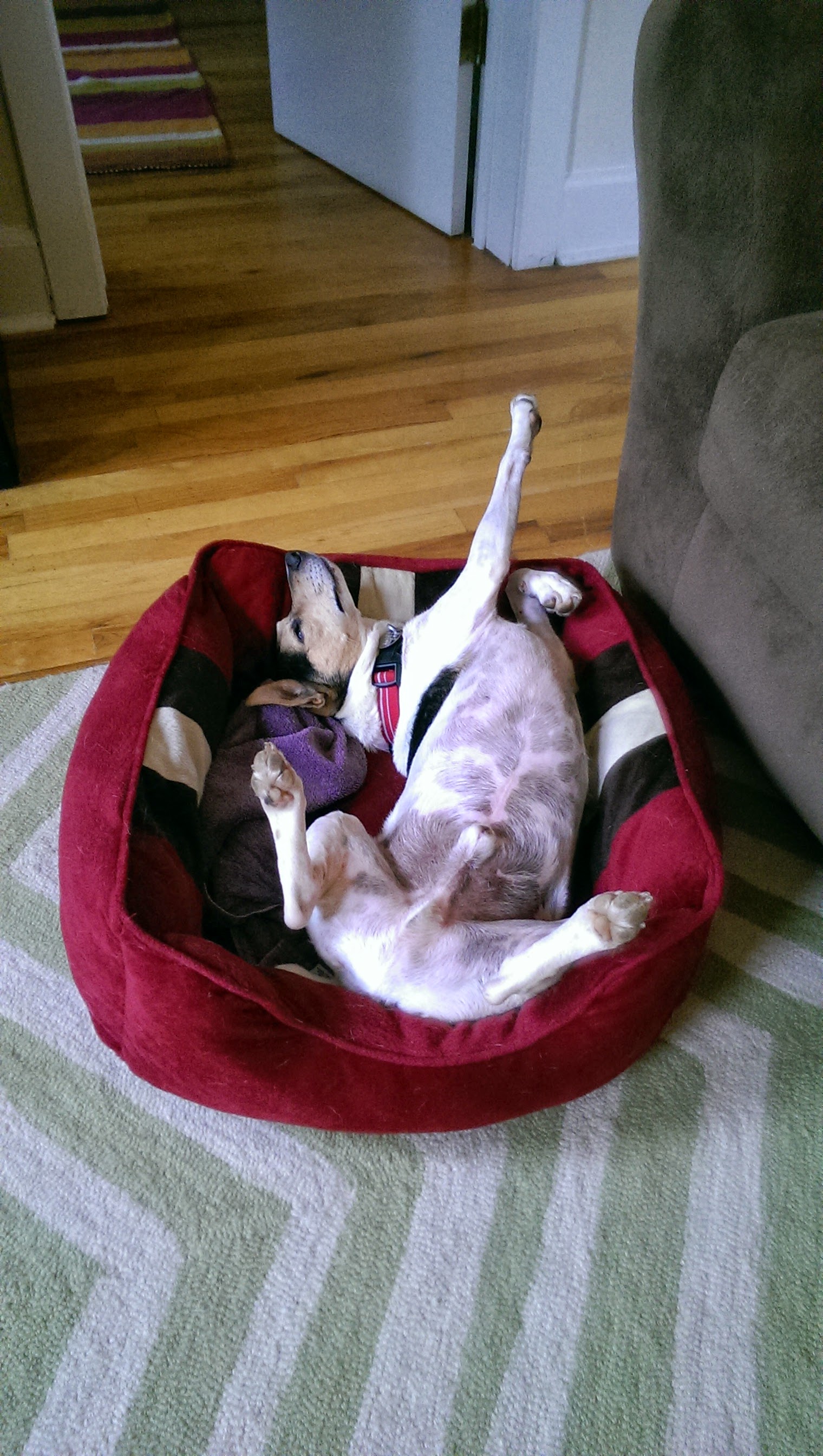 Has a whole month already passed since my last post? Wow. I must’ve been busy or sleeping or busy sleeping. Of course, I may have also been sidetracked by a few visitors from out of town, some urge to cherish these final days of summer, or the treasure trove of tennis balls that was bequeathed unto me. I guess it doesn’t matter what I’ve been doing, it only matters that I’m back. And boy am I back! What do you want to learn about this week? My thoughts on loud sounds? Why I think crunchy peanut butter is superior to creamy? What I think is behind the front door when I can’t see it? Rain? Flies? Popcorn? That clicky noise I hear after I get a treat? Perhaps you would just enjoy reading my rambling thoughts all in succession. Punctuation? I use it more often than most people. Alright, I’ll narrow your options down to one. We’ll discuss my favorite places to stand or lay down.