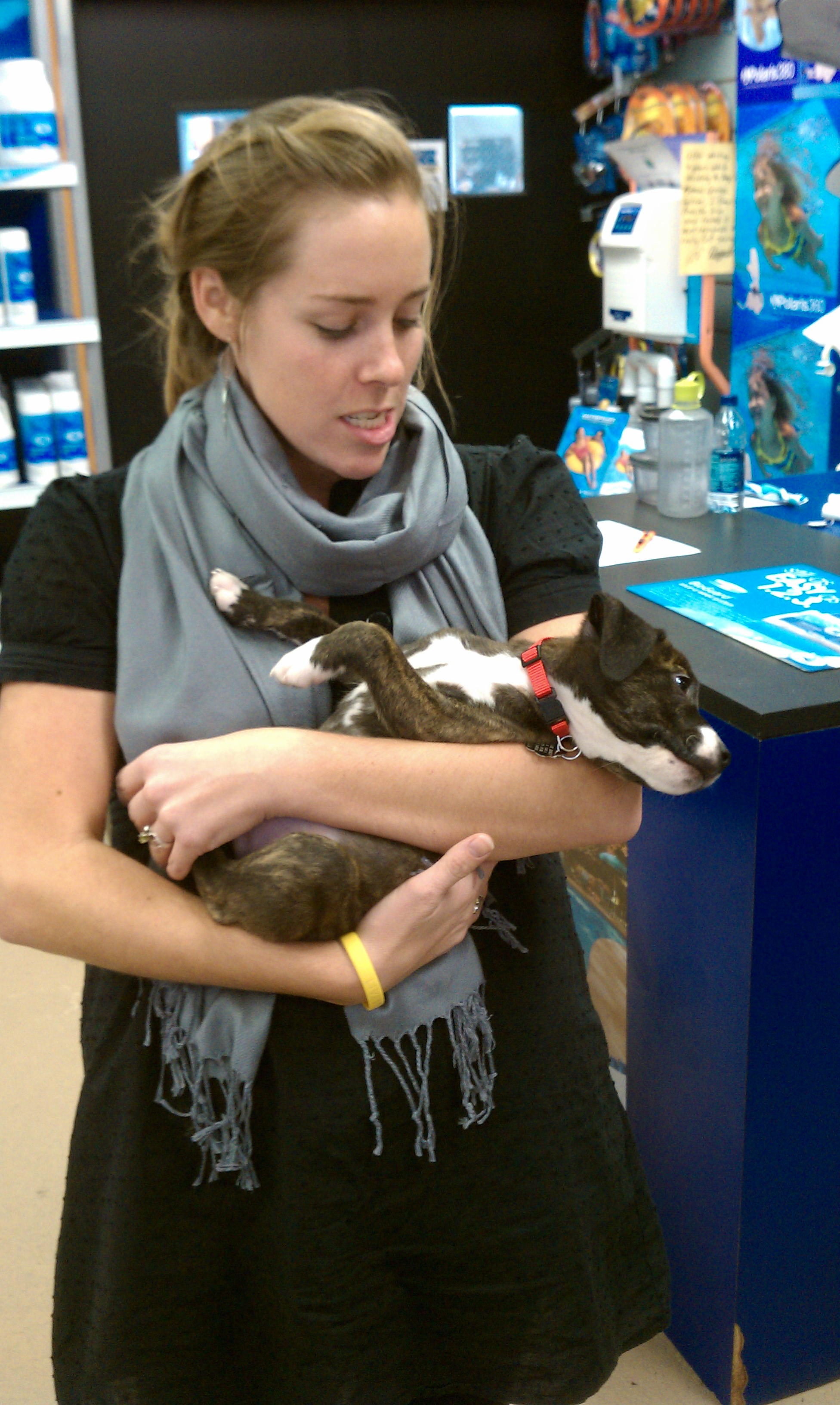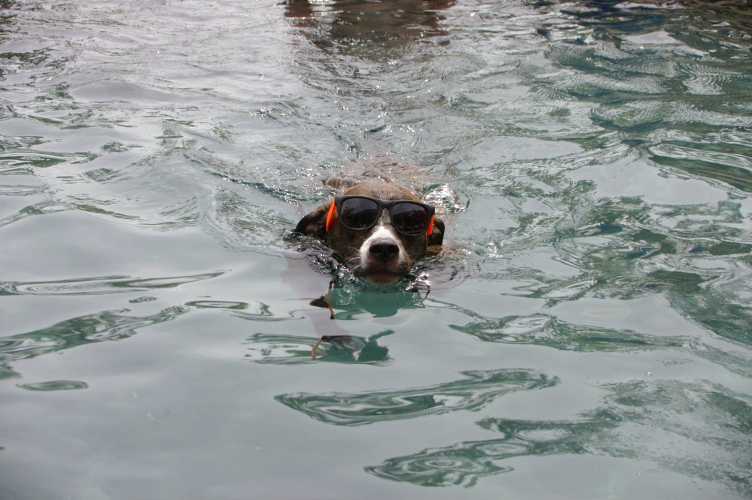 You may remember that I mentioned I had a stout battle with parvo as a young one. The illness wrecked my insides for a while, but I fully recovered after some gentle coaxing of the IV needle. It seemed like all was good and dandy after coming home from the hospital, but my little stomach wasn’t quite as ironclad as some would hope. A change in diet, a certain kind of treat, or maybe those dust bunnies that I eat on occasion all seem to give me the vomits. The digestive part of life has improved as I’ve grown older even though I may enjoy a dust bunny here or there. The problem that does persist, and may be of no consequence of my parvo, is my joint problem. I was quite the rambunctious young lad with little concern for my well-being as I ran full speed into tables, leaped impossible distances and swam for a solid 8-10 hours in a day. I’m not sure I can pinpoint the exact time when my first knee went, but the residual pain in my back right knee kept me floor ridden for the whole next day after exercise. The vet says I tore my ACL equivalent called the CCL (cranial cruciate ligament). Life could continue without surgery and my other CCL was likely to tear as well. Devastating, right? I’m an athlete in my prime and SNAP! Sad days ahead unless you’re me and luckily, I’m me. Who needs one knee when you run on four legs!? I’ll run as long as I can on three legs and then two legs and then one leg and then I’ll roll around like a barrel when all my legs go out! It was a good idea until some grade A jerk at a dog park yanked me by my back two legs because he was unaware that dogs bark and growl when they are at a dog park. I forgive him, but he’s still an anus. He pulled my legs and SNAP! went the other rear CCL. Now thems some dark days. Things got so bad for me that I had to be carried around for a few days because the pain of getting up was hell. Eventually the pain and swelling subsided and semi-regular life resumed. Running around had tough consequences and I dealt with them as any man would…lying down and crying for a while. The pool was my only haven; A place where I could glide with the speed and agility of someone who is an excellent swimmer and very hairy. My time in the pool would end and I had to return to the world ruled by the harsh mistress that is gravity. A solution lay ahead, but that’s for a whole new blog post. Until then, my favorite person!